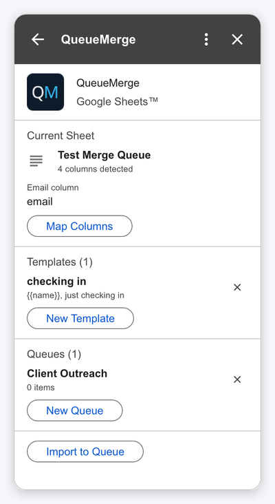 Install QueueMerge for free and start sending personalized emails powered by your Google Sheets™ data.